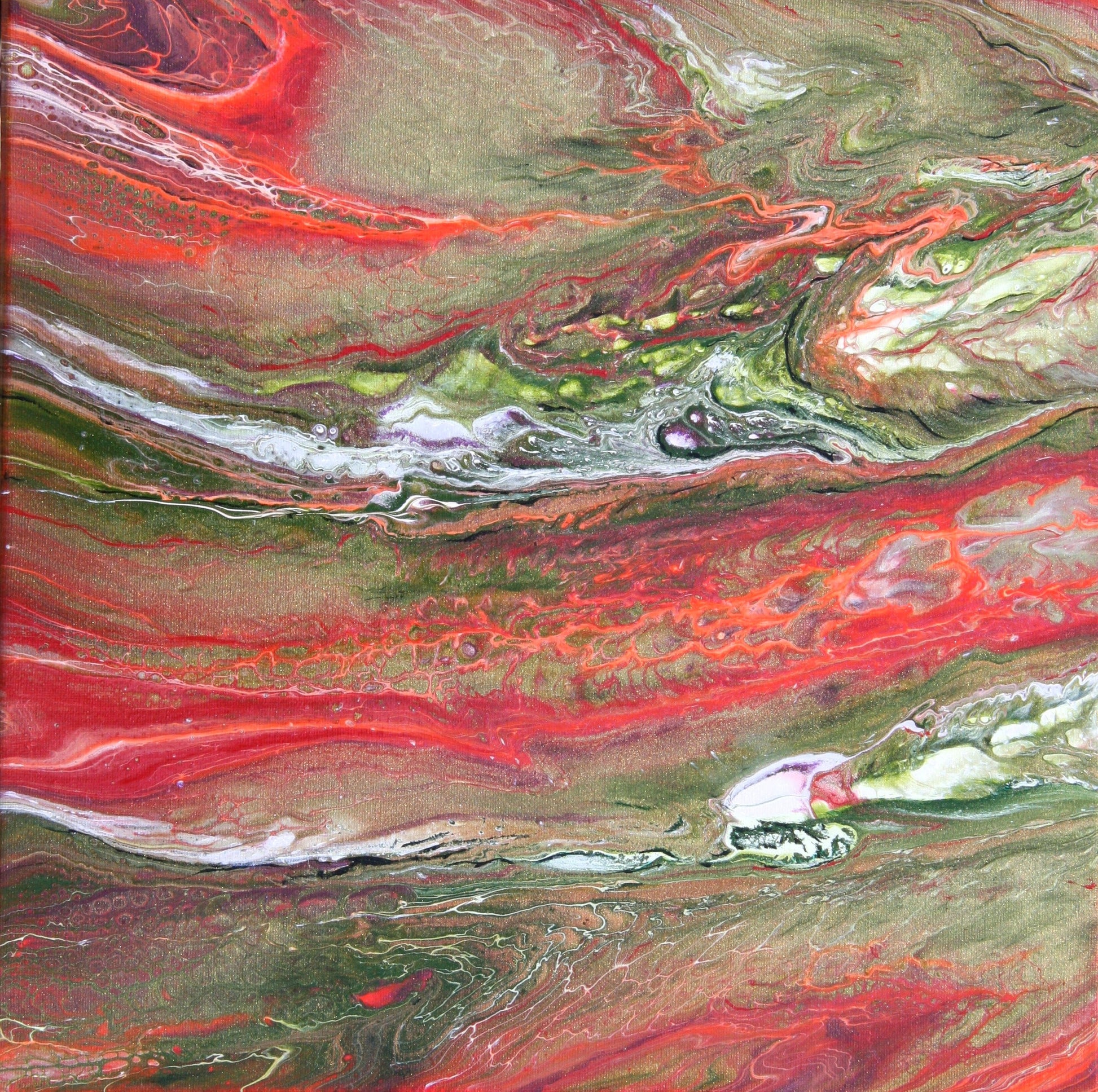 Rich colors in acrylic paint orange and green with splashes of white using a swipe technique. Spectacular in person